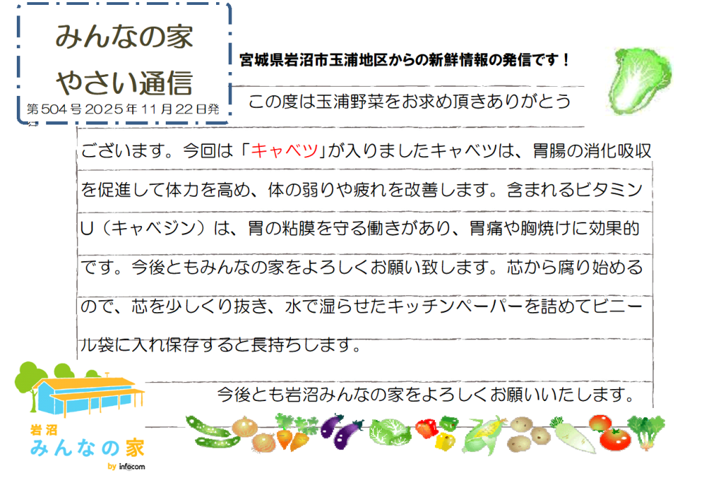 この度はみんなの家の直売野菜をお求めいただきましてありがとうございます。